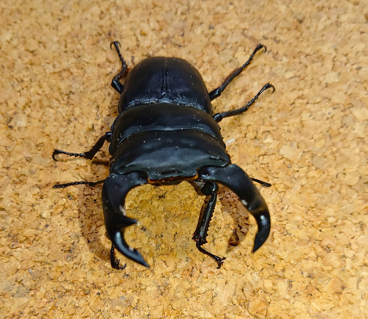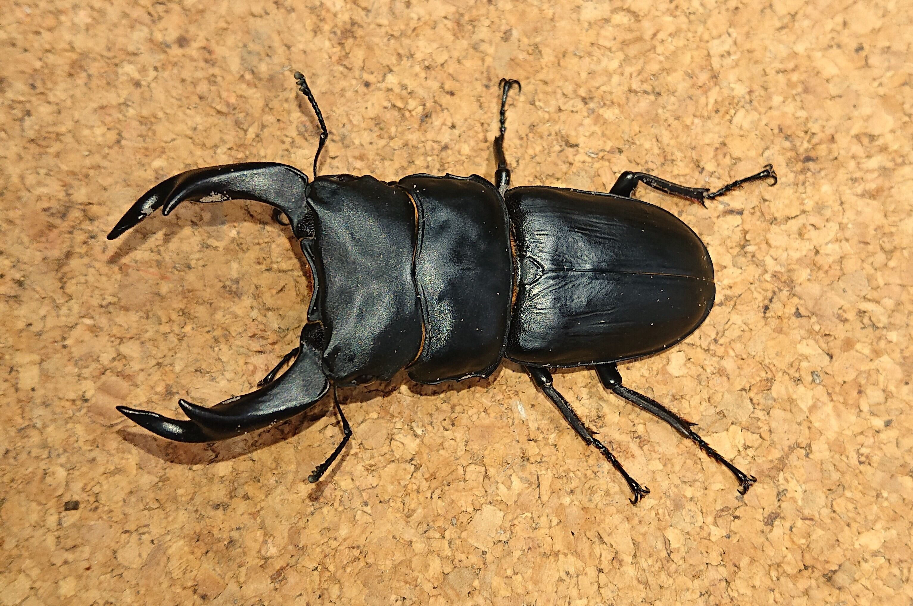 〇サイズは、羽化1ヶ月後に大顎を開いた最大となる状態を電子ノギスで0.5mm刻みで計測し、端数は切り捨てています。計測時に静止しない個体があったり、体を反らせたりする個体があったりします。測定誤差はあるものと御理解ください。