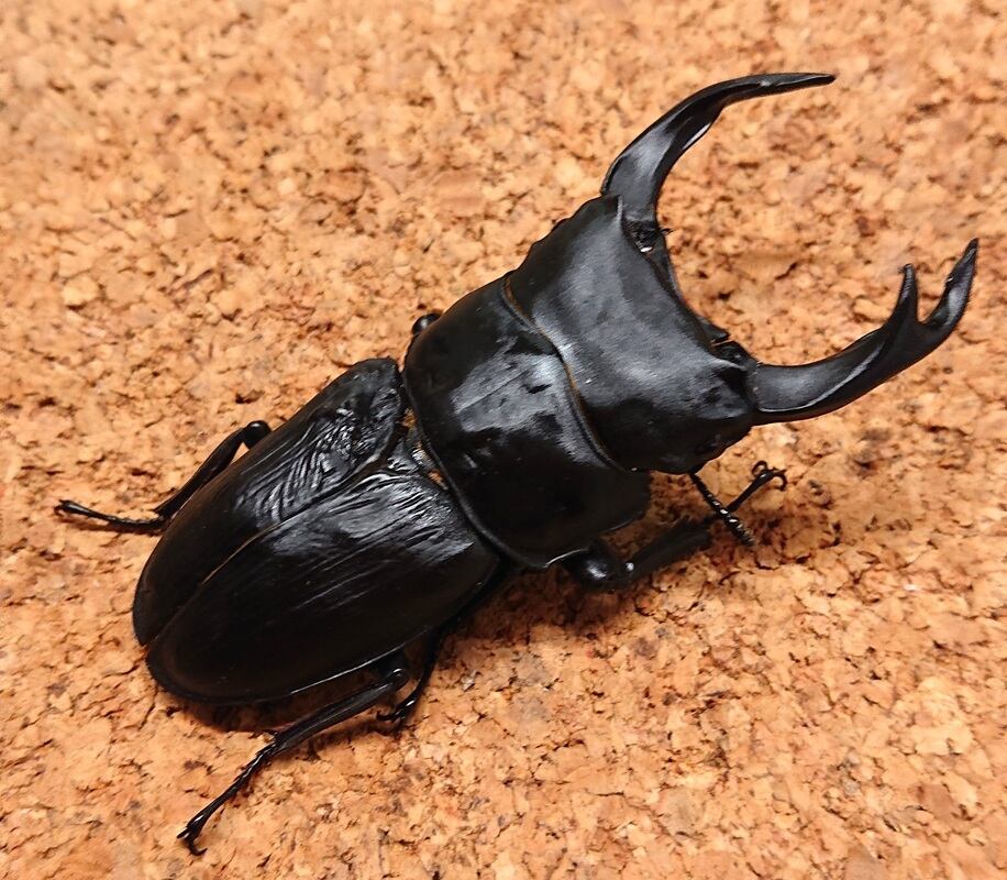 〇サイズは、羽化1ヶ月後に大顎を開いた最大となる状態を電子ノギスで0.5mm刻みで計測し、端数は切り捨てています。計測時に静止しない個体があったり、体を反らせたりする個体があったりします。測定誤差はあるものと御理解ください。