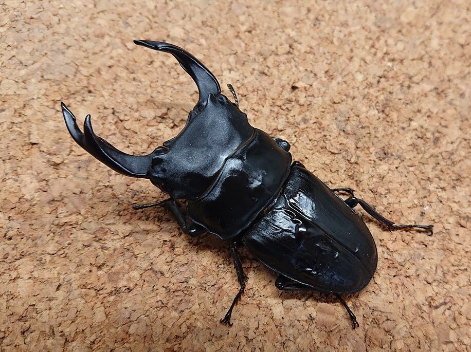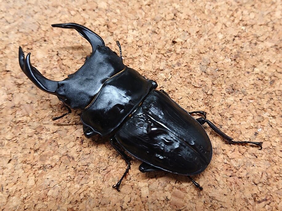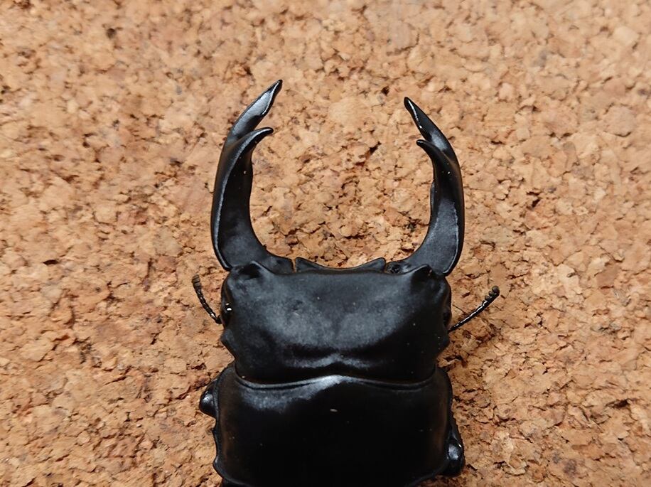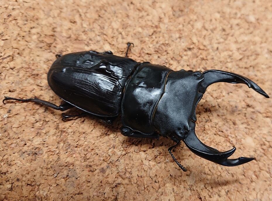 この血統は大型化するだけでなく、全体のバランスがとれた上で頭幅が広く大顎が短いという遺伝的特徴を持っていると思います。また、前胸がツヤ消しの個体が多いのが特色です。細かな温度調節をしないズボラな飼育でも♂の平均サイズは確実に80mmを越えますので、飼育方法によってはさらなる向上が見込めるでしょう。