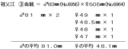 ♀49mm、♀48mm = 祖父江③血統(画像6枚目を御覧ください)