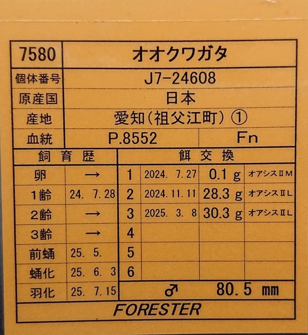 ♂80.5mm = 祖父江①血統(画像5枚目を御覧ください)