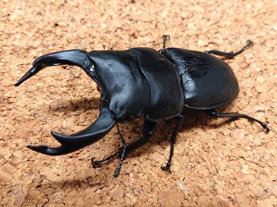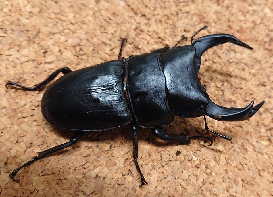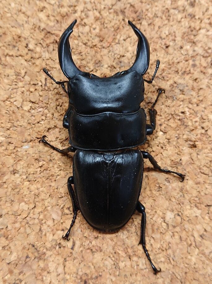 〇サイズは、羽化1ヶ月後に大顎を開いた最大となる状態を電子ノギスで0.5mm刻みで計測し、端数は切り捨てています。計測時に静止しない個体があったり、体を反らせたりする個体があったりします。測定誤差はあるものと御理解ください。